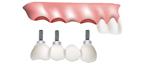 With multiple tooth loss, often a dental bridge is used. This means that you won’t need an implant for every missing tooth, because a dental implant bridge involves multiple prosthetic porcelain teeth attached to a less number of implants than the number of teeth being replaced.